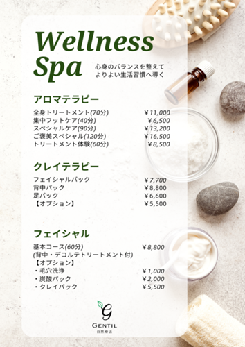 Gentilでは、自然の力を取り入れながら、心と身体のバランスを整えるケアをご提供しています。 アロマ・クレイ・フェイシャルを組み合わせ、その日の状態やお悩みに合わせた施術で、内側から整う感覚を大切にしています。アロマトリートメント植物由来の精油を使用し、やさ...